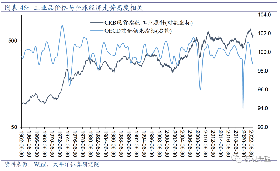 在全球经济下行的背景下,工业品的前景则相对黯淡。“需求”和“供给”的影响孰轻孰重一直是市场争论的话题之一。我们复盘了历史上每一轮经济周期,可以看到决定工业品价格弹性的主要还是需求端的因素。即使在上世纪70年代大通胀时期,当经济出现衰退之时,工业品价格也会显著下跌。所以我们认为2023年全球总需求的萎缩将压制工业品的表现。同时,在俄乌冲突的短期冲击过后,工业品原材料的供给实际上是在边际改善的。所以我们认为2023年主要的工业品价格易跌难涨。