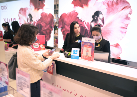 “今年春节,好多以前认识的内地客人都回来了,感觉还是很亲切!三年前不少人来香港还会事先兑换现金,但现在到店看到二维码都会扫一扫,消费力度也比以前更大了,他们都很兴奋、很期待来香港shopping!”在旺角,MOKO新世纪广场里的莎莎柜姐小双开心地说。