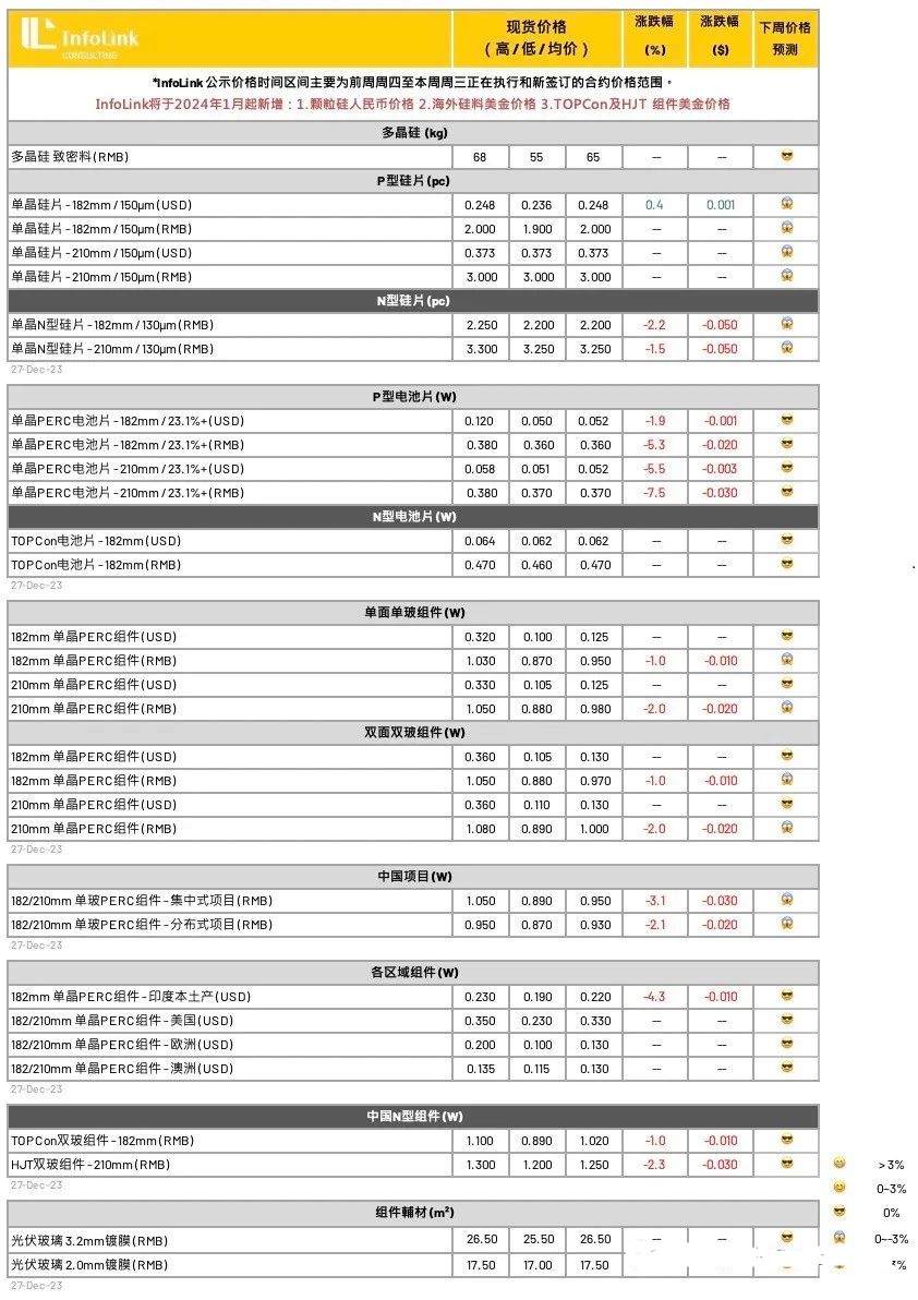 当前整体价格走势仍然悲观,随着单月产出的持续增量,预期往后仍有跌价空间,同时,在年末拉货需求缓慢收缩的同时,硅片价格仍将透过自身排产调整对应变化,市场也静待明年1月硅片与电池片排产的具体落实情况。