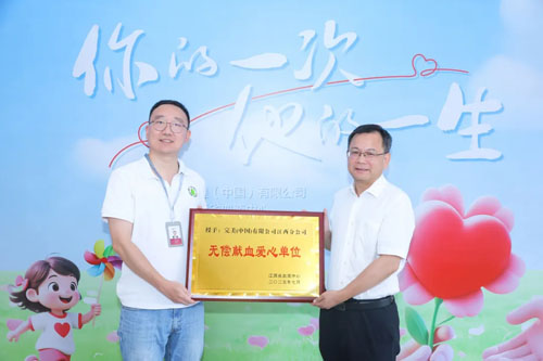 7月,完美江西分公司分别在江西南昌市和江西上饶市开展了“你的一次 他的一生”第二十二届完美百城千店万人献血活动,以实际行动汇聚爱心热血,传递公益力量。江西省血液中心党委副书记、主任范为民也来到现场感谢完美人的爱心奉献,并为完美江西分公司颁发了“无偿献血爱心单位”牌匾。