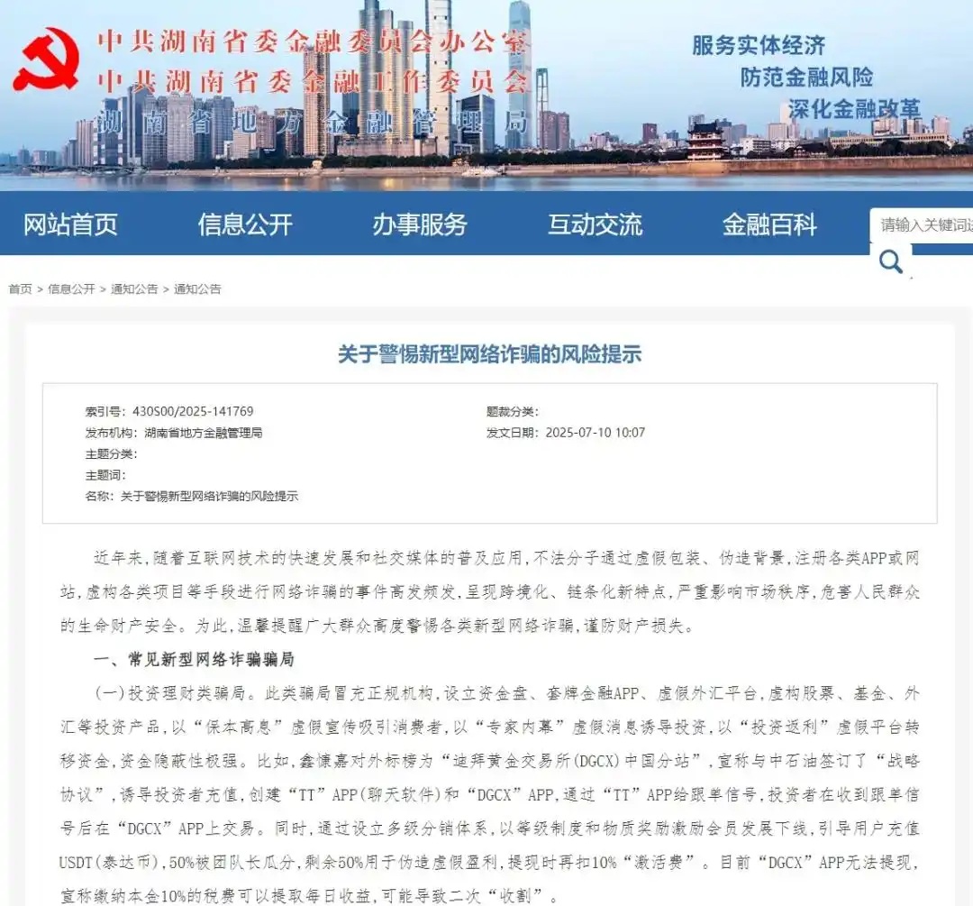 近段时间,号称“日息2%”的百亿资金盘骗局“鑫慷嘉”崩盘,引起了整个社会对于新型网络诈骗的关注与警惕。监管密集“吹哨”,据第一财经不完全统计,7月份以来,包括广东、云南、湖南、辽宁、黑龙江、浙江、福建等地在内的多地金融监管部门密集警示以“虚拟币”为名的非法集资风险、新型网络诈骗风险等。
