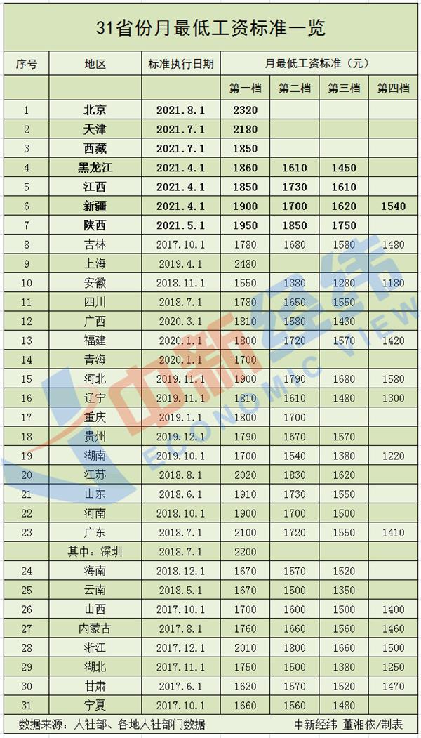 摘要:近日,北京上调最低工资标准上调至每月2320元,中新经纬客户端梳理发现,年内,北京、天津、江西、黑龙江、陕西、新疆、西藏陆续上调最低工资标准。此外,多地明确调整并酝酿有关方案,广大打工者将切实受益。