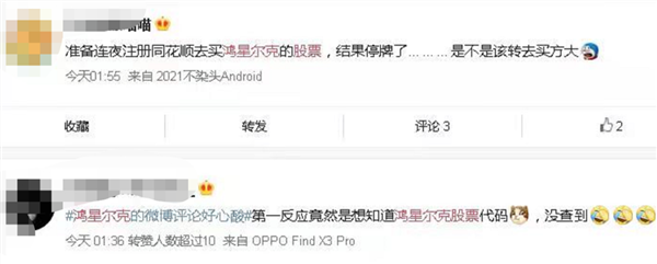 还有人想买鸿星尔克的股票。不过,鸿星尔克在新加坡上市,不过目前仍在停牌状态。