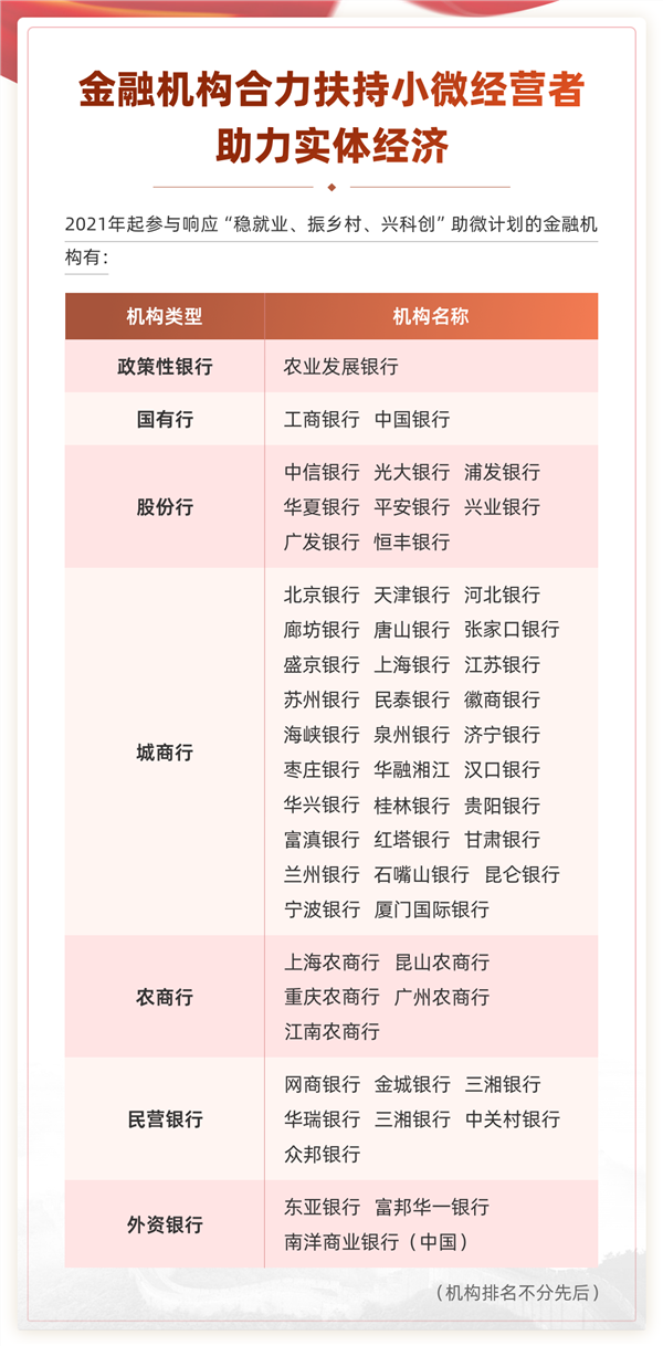 据了解,为缓解小微融资难题,自2020年以来,全国工商联会同多家行业协会,以及工商银行、中国银行、农业发展银行、平安银行和网商银行等多家金融机构,连续两年开展“助微计划”,助力小微复工复产、健康发展。