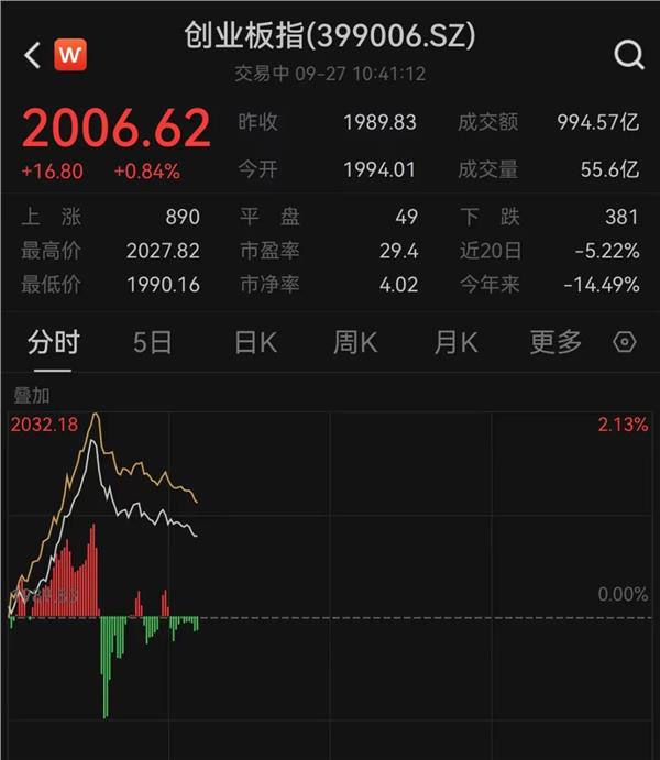 央行会议内容发布后,A股指数开盘走强,三大指数盘中冲高,创业板指一度拉升涨超2%。