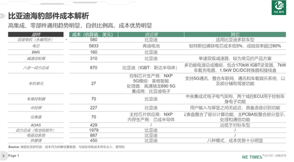 瑞银投资银行研究部曾拆解了一台比亚迪“海豹”(550km续航版本),并发现相比传统OEM,比亚迪拥有25%的成本优势。这一优势并非通过偷工减料或造假售假获得,而是通过优化供应链、提升技术成熟度以及利用规模优势来降低生产成本。同时,比亚迪还采用了CTB设计、八合一动力总成及冷媒直冷热管理系统等技术创新,这些不仅提升了整车性能和效率,还进一步优化了成本结构。