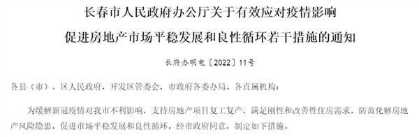持续"松动"!又一省会城市长春出台20条稳地产措施